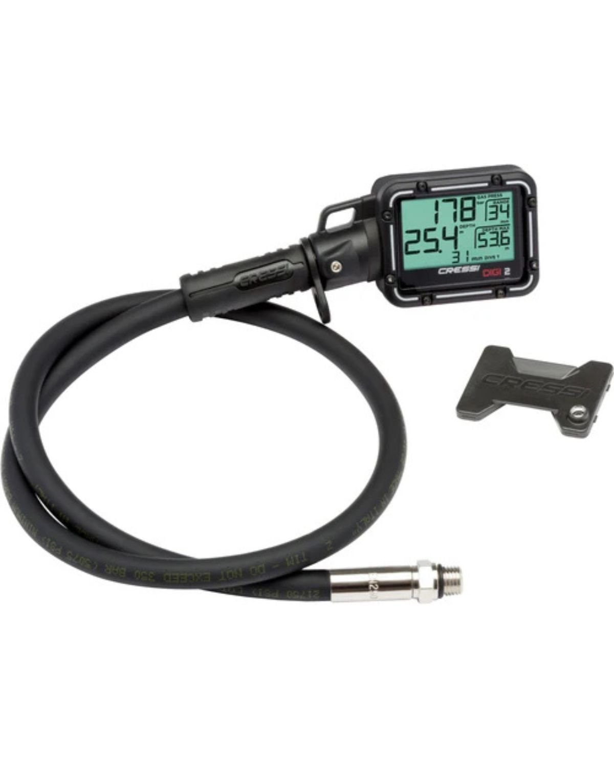 Confiamos uno de los datos más importantes referidos a nuestra seguridad, sino el más importante, el de la presión de aire de la botella, a un instrumento extremadamente sencillo y poco preciso, el manómetro analógico, una espiral de cobre a través de la cual un El orificio detecta la presión y ofrece la lectura en una esfera desplazando la aguja. Con DIGI 2 Cressi propone un instrumento de alta precisión y que además aporta otros datos de interés constante para el buceador. Todo ello con un tamaño y costo muy contenidos.
