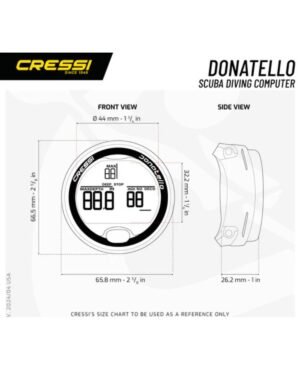 Manómetro calibrado en agua salada para máxima precisión durante el uso típico. El Donatello también se puede restablecer por completo después de cada uso, lo que permite dárselo a otro buceador.